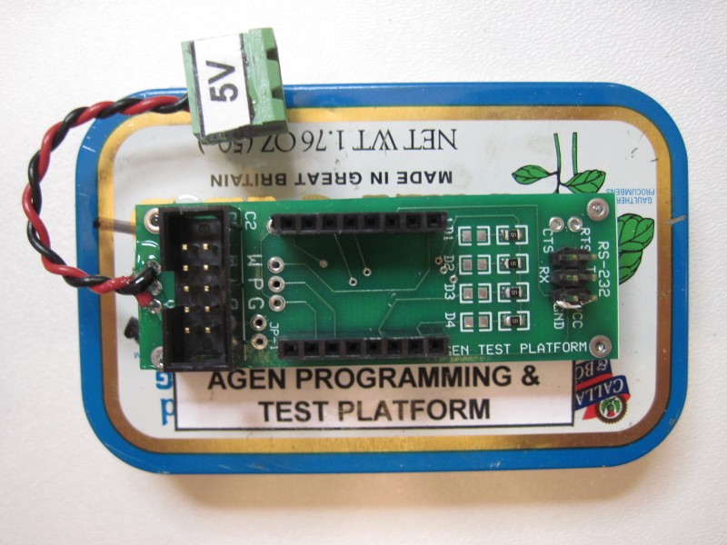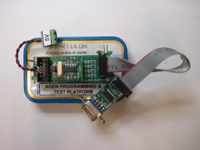 The ADEV Test/Programming Board accepts an assembled ATAR Module (or AGEN Module) and has facilities such as a serial port interface connector and test LEDs for module testing. In the case of an ATAR populated with a 300 chip, the Test/Programming board can be used to program the chip.