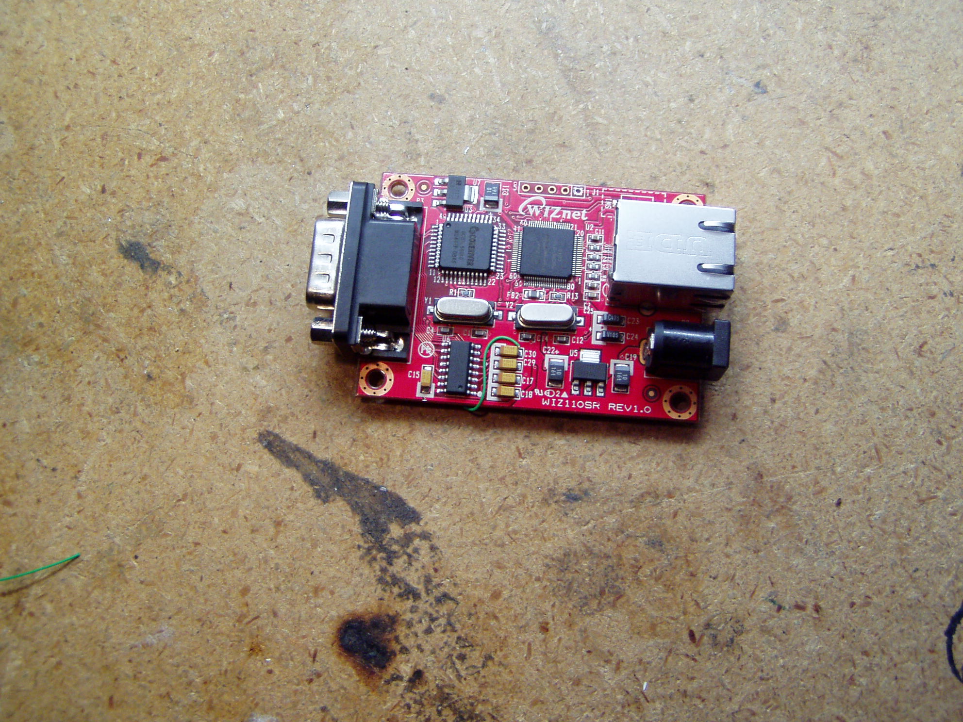 You see my problem is where the WS2316 is located, in our TV room. Nice place but well removed from all my computers in the office. Everything everywhere has a network drop but the WS2316 is serial, so the just found WIZ110SR should do the trick. I order two units and the following week had it in hand. It seems pretty straight forward, a small unit about 2 by 3 inches with power and ethernet on one end, and DB9 on the other. My only complaint is using windows for their configuration setup, although your suppose to be able do it from any terminal connected to the serial port - that failed for me.
